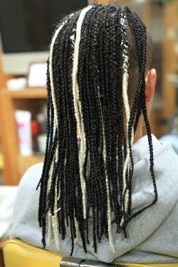 ブラック&ホワイトのツーブロックブレイズ スタイルです!
