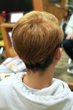 試合前にヘアスタイルバッチリキメていい感じにしあがりました仕上がりました。