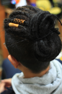 ハンドメイド・ドレッドビーズを装着してUPスタイルで