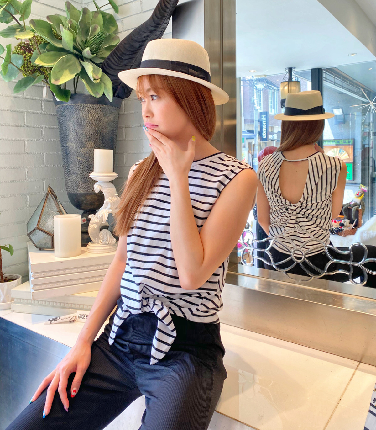 トップスはノースリーブボーダー![]()