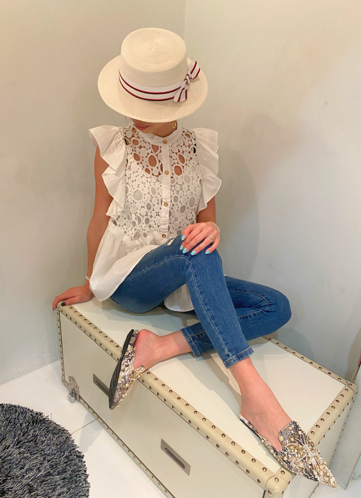 夏はホワイトトップスが映えますね~![]()
