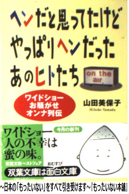 小保方師匠会見今夜はこのニュースで大忙し。 またワイドショーはノーカットかな。 Yahooニュースでチラ見したけど、撤回を勧めてたな。でもそれだと無かったことになっちゃうんでしょ?ダメでしょ。 また、この人の上にまた教授がいて、その人の検証結果に文句は言えなかったとのこと。 その教授じゃん! 次回はこの教授の尋問だね! 【中古】 ヘンだと思ってたけどやっぱりヘンだったあの人たち ワイドショーお騒がせオンナ列伝 /... ¥258 楽天 [DVD] 第三惑星放送協會 ブラックワイドショー 惑星通達 モハ2-135号 ¥2,359 楽天