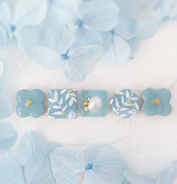 こちらの水色のイヤリングも、何度もお声を掛けていただいているものです。