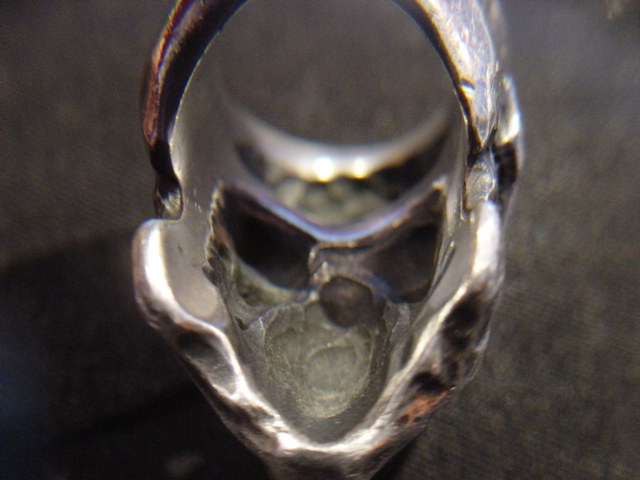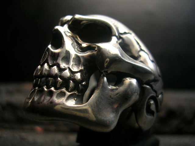 リング内側の抜きに至るまで、細部まで妥協はない。本物の”スカル”のようにリアルに仕上げると同時に、装着時の肉の逃げ場や着け心地まで考えて製作していると言うのだから驚きだ。私自身もかなり大きいく重いリングを着けているのだが、実際に着け心地も良く装着感も安定していて不快な違和感を感じた事が一度もない。これはアクセサリーを身に着ける人間からしたらすごく重要なポイントではないだろうか。