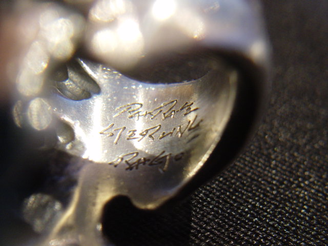 【ラットレース】の作品は大きいモノからピアスなどの小さいアイテムまで全てに手彫りのサインが刻まれている。作品に対する思い入れが深く、職人気質なRATGJO氏の拘りだろう。