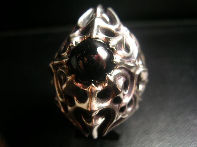 通常ラインのRing中央を大きくくり貫き大粒のオニキスをSET致しました。