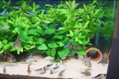 朝から週1回の水換えをやりました。45センチ水槽のガラス面のこけとスネールが目立ってきましたので、昨日店へ行ってタイガープレコとトーマシィを購入しております。チェッカボードシクリッドを買おうと思って行ったのですが、意外に地味だったのでやめて、前述の45センチ対策をすることにしました。60センチは45センチにラスボラ10匹ネオン4匹移したらさびしい感じになっておりますが、いずれエンゼルフィッシュをいまの倍位に増やしてしまいたいと考えています。が、本当にエンゼルがいいのでしょうか、自分でもわかりません。本当は海水魚を45センチで飼おうと思っていたのですが、諸般の事情であきらめました。その結果45を淡水熱帯魚水槽としたため、60センチとのコンセプト(大げさな言葉ですが他に適当なのが思いつきません)差別化ができておらず、中途半端になっています。水換えのときに掃除を一緒にやっています。60センチの爆殖したハイグロフィラポリスペル