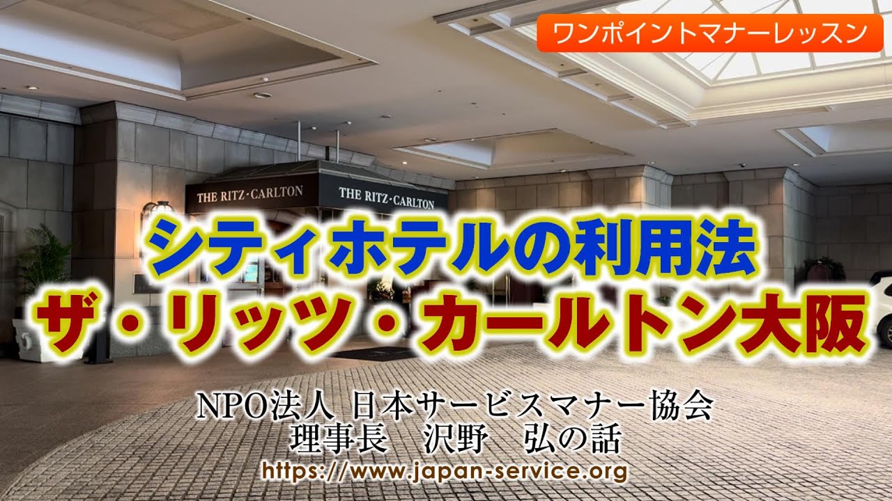 日本サービスマナー協会youtube動画「シティホテルの利用法・ザ・リッツ・カールトン大阪-日本サービスマナー協会理事長 沢野弘」