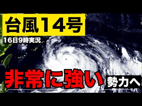 【台風14号】非常に強い勢力に発達(16日9時実況)9月16日(金)9時、大型の台風14号(ナンマドル)は中心付近の最大風速が45m/sに達し、非常に強い勢力となりました。今後は北西に進んで、三連休中の18日(日)~19日(月)に九州にかなり接近・上陸する見込みです。接近時も非常に強い勢力を保つ上、動きが遅いと予想されることから、長時間にわたって暴風雨となるおそれ...www.youtube.com