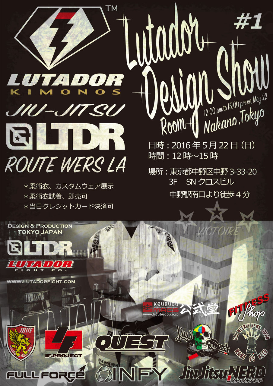 ・5月22日ショールーム当日は、柔術衣をご購入頂いた方、先着20名様に、ルタドール キモノスのTシャツをプレセント致します!!