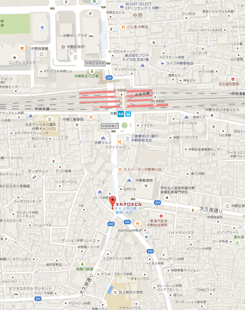 場所:東京都中野区中野3-33-20 SNクロスビル 3F