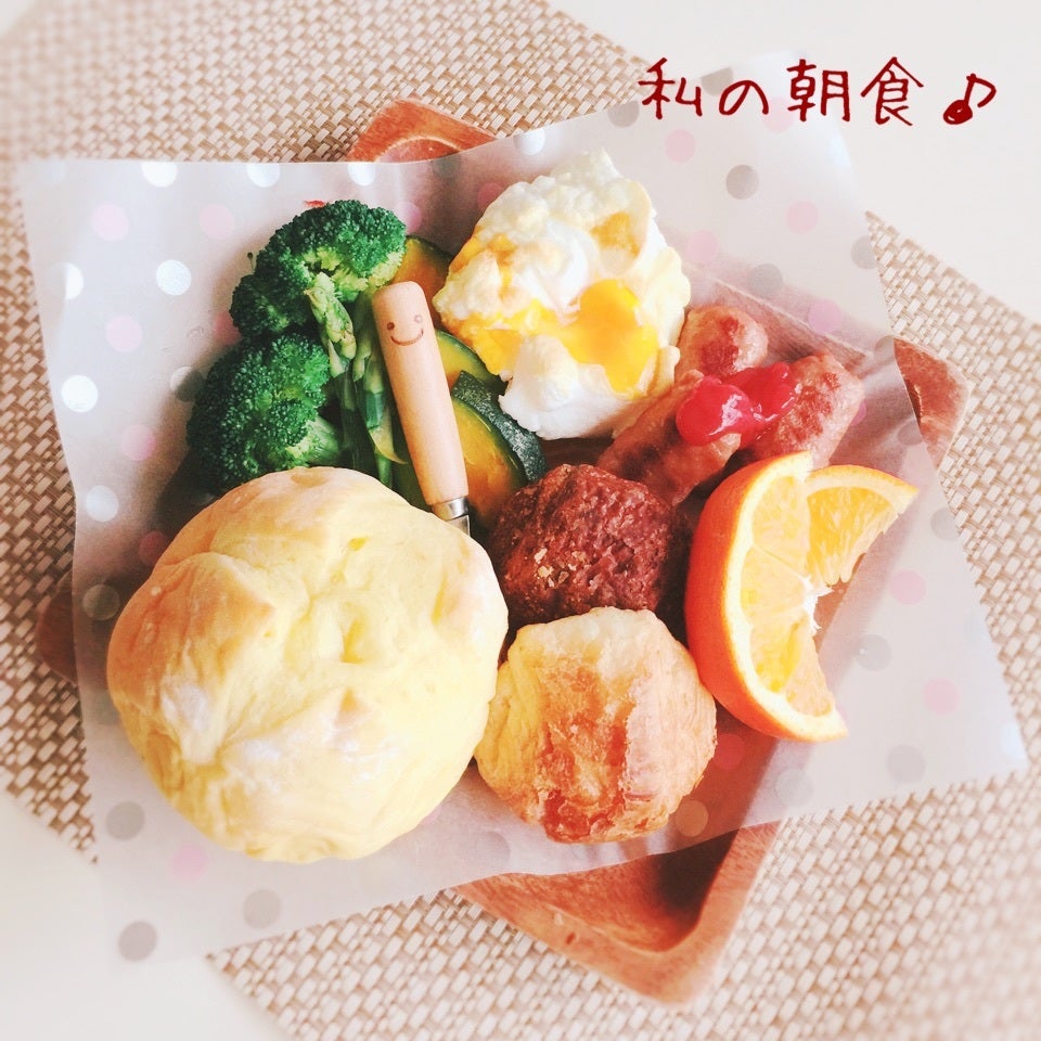 ホットサラダとエッグインクラウド ふかふかなカボチャパンに黄身を付けながら食べてみたくて~今朝は久々にエッグインクラウド作った♡︎ʾʾ予想通り旨し(*^o^*)後はチーズインスティック、ホットサラダ、フルーツ casmamaさんのお料理をもっと見る