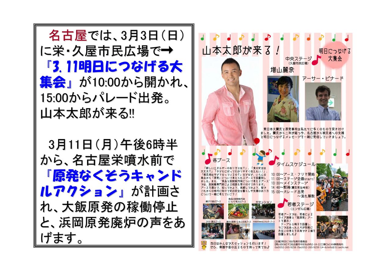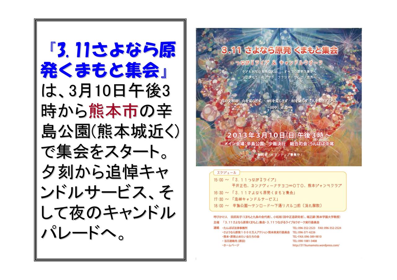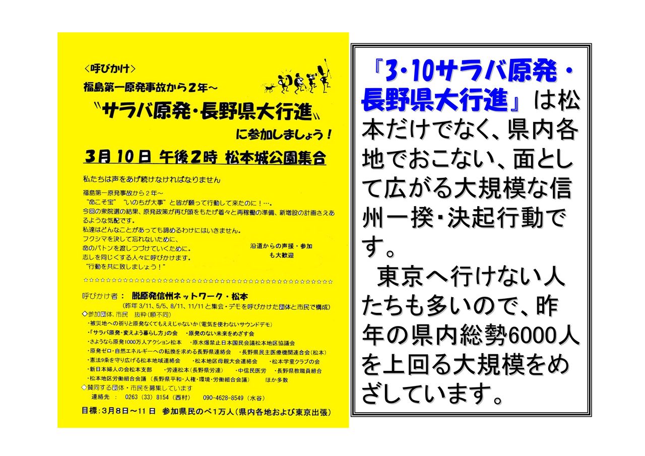 フクシマ2年のデモについて、「首都圏版」と「全国版」のファイルを分けて、最終版・第三弾としてお知らせします。 このファイルは「全国版」です。