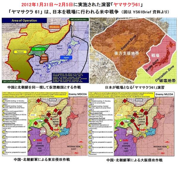 ヤマサクラ61演習の「敵の最も可能性の高い行動方針」を示した米軍作成の図。東京占領をめざす部隊OSC―2は新潟から、大阪占領を目指す部隊OSC―1は金沢と鳥取県米子市から上陸する想定になっています