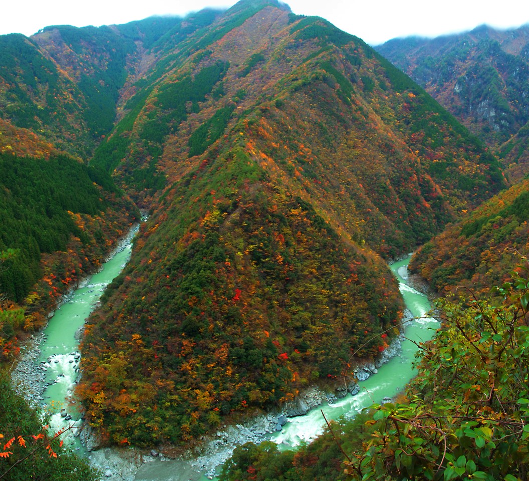 吉野川が流れる大きな谷を下って行きます。ここは中央構造線のど真ん中なのですね~