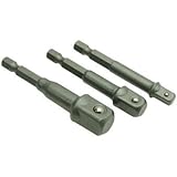 インパクトとかドリルドライバーのヘックスを、1/2、3/8、1/4sqのソケットに変換できるアダプターで、6角軸のインパクトやらが後からやってきた場合に大活躍する代物です。