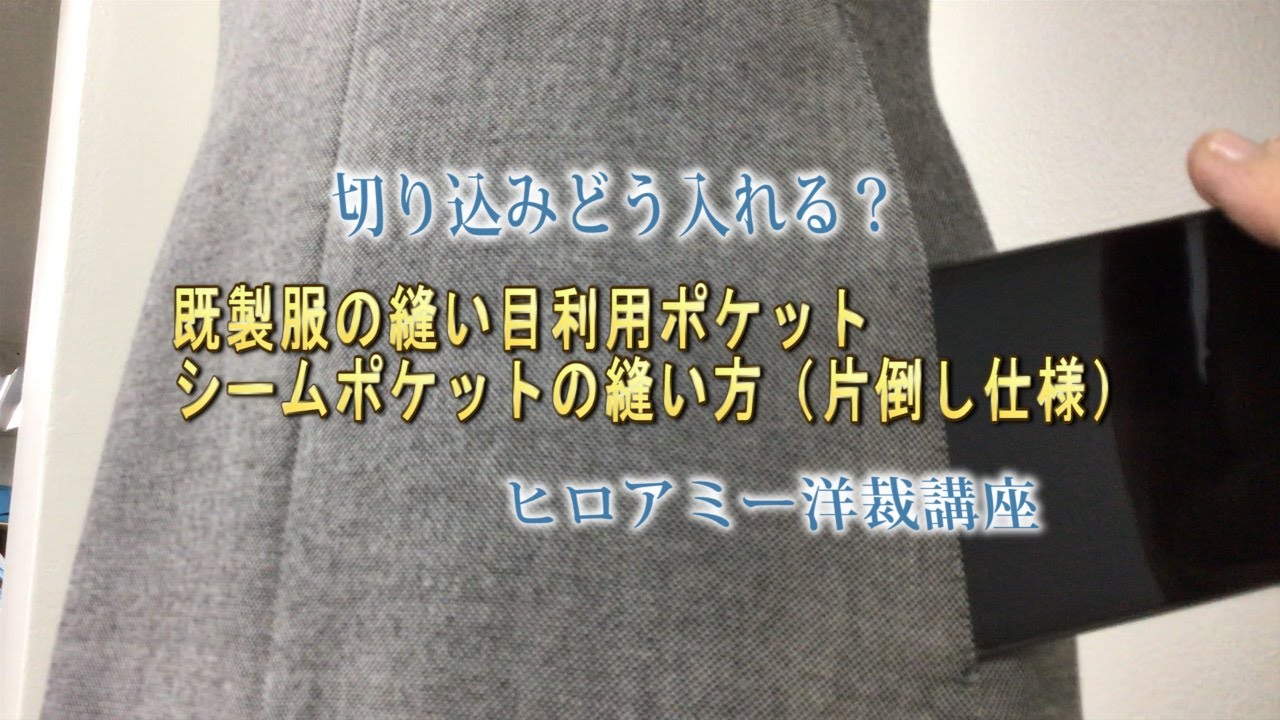 シームポケット、縫い目利用ポケットの縫い方(裁ち出しの場合)