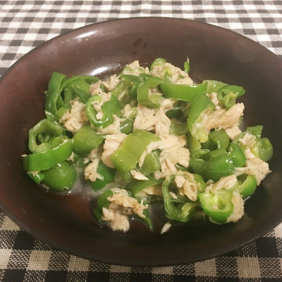 1 ピーマンを縦半分に切り種を取り、横に細切りにします。