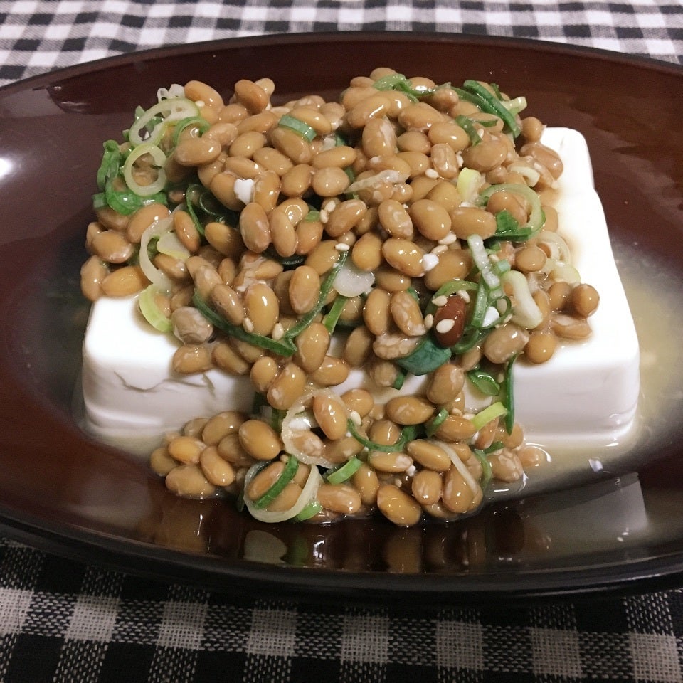 2 お皿に豆腐を盛り付けて混ぜた〇をのせたら出来上がり♪