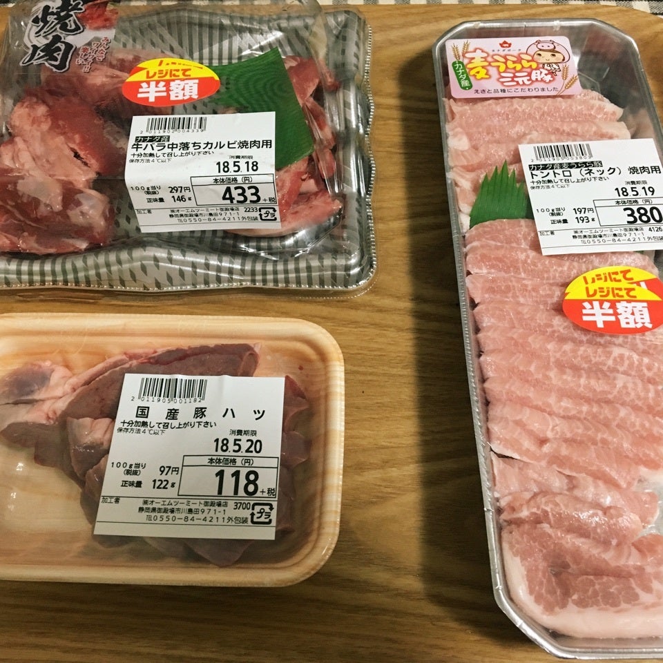 焼肉今日の夕食は焼肉を食べました(๑•ᴗ•๑)♡ 材料◯1人前・牛バラ中落ちカルビ ── 1パック・トントロ ── 1パック・豚ハツ ── 1パック・すりおろしにんにく ── 適量・焼肉のタレ ── 適量 詳しい作り方 01中落ちカルビとトントロは半額でGETv(。・ω・。)ィェィ♪ まぁたん(まぁ坊)さんのお料理をもっと見る