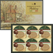 メリーのしっとりやわらかなマロングラッセをクラッシュして、プディングの中に混ぜ合わせました。コクのあるプディングにマロンの甘さが引き立つまろやかな味わいです。