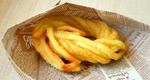 「う・ドーナツ」人気/食感はカリ、モチ、ツル・高松自動車道の津田の松原SAで、うどんを揚げて作ったドーナツ「う・ドーナツ」が人気を呼んでいる。SA内にあるうどん店の麺を使用。