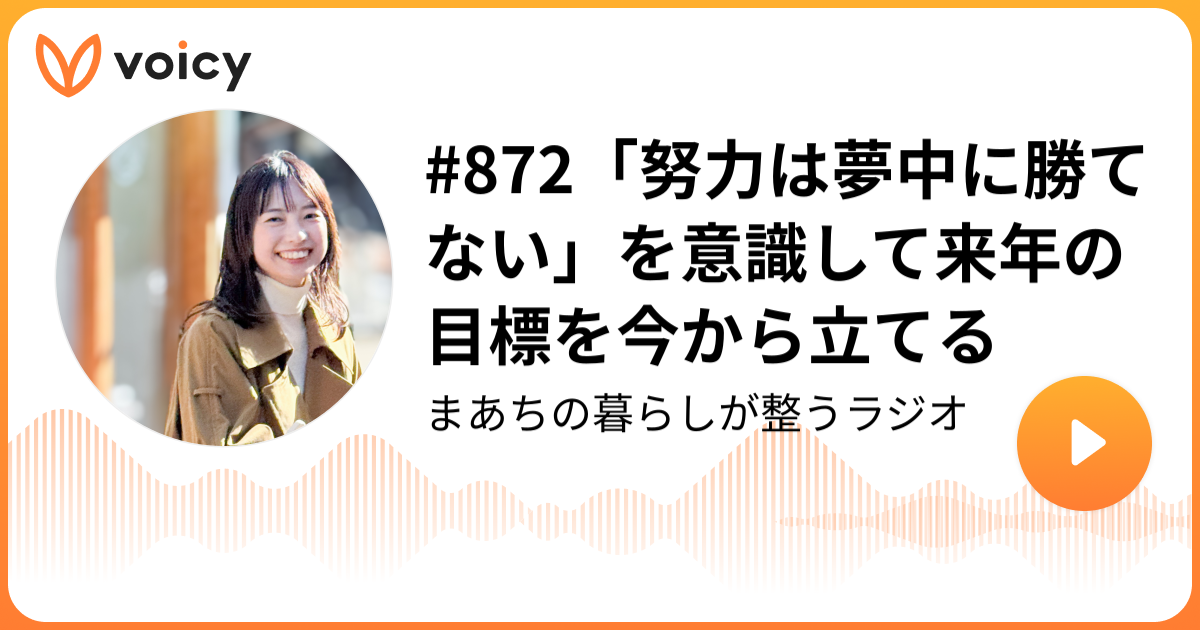 先日、Voicyで「まあちの暮らしが整うラジオ」の「#872 『努力は夢中に勝てない』を意識して来年の目標を今から立てる」という放送を聞いて心に響いたので記録しておこうと思います![]()