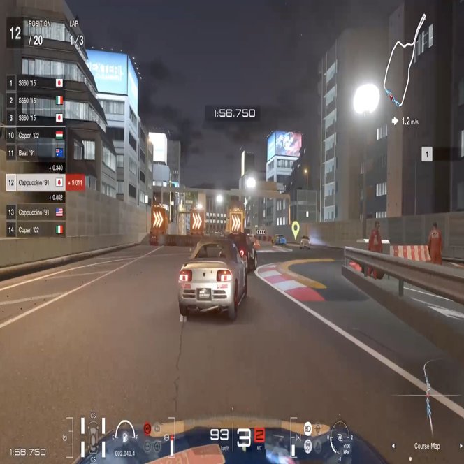 また走行中はブレーキバランスをフロント強めにしてシケインを曲がりやすくして走りました。リプレイみてね。