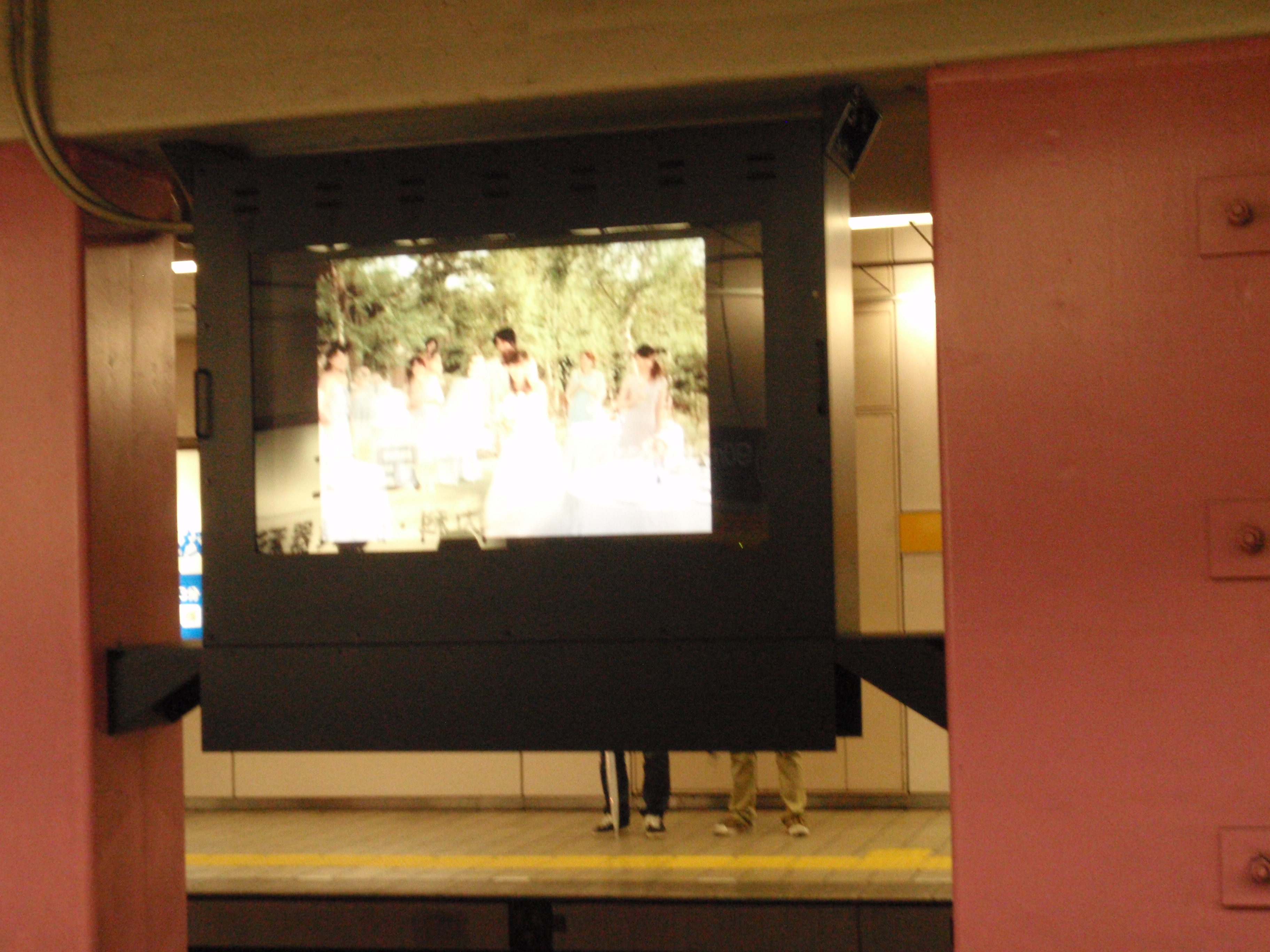 地下鉄の駅のホームにはこんな巨大なモニターが。