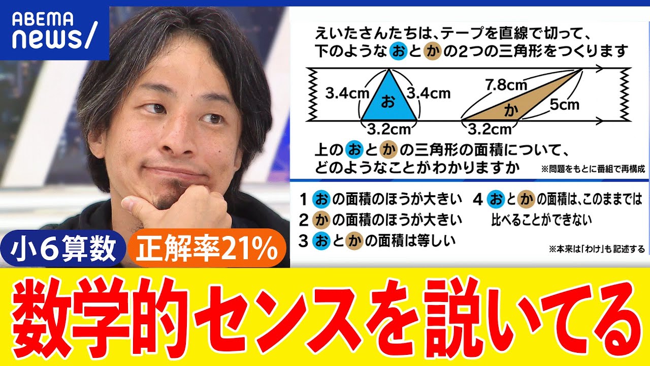 小6の問題では、算数の三角形の面積問題が正答率20%強。