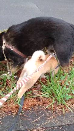 二人の世界(2匹ですけど・・) -柴犬ひなあおそら