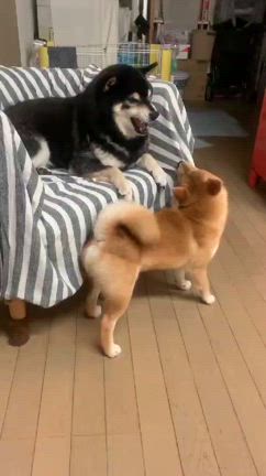 豆柴の相手を真面目にこなす黒柴はラスボスにはなれない -柴犬ひなあおそら