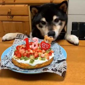 黒柴あおい、13歳の誕生日を前倒しで祝う -柴犬ひなあおそら
