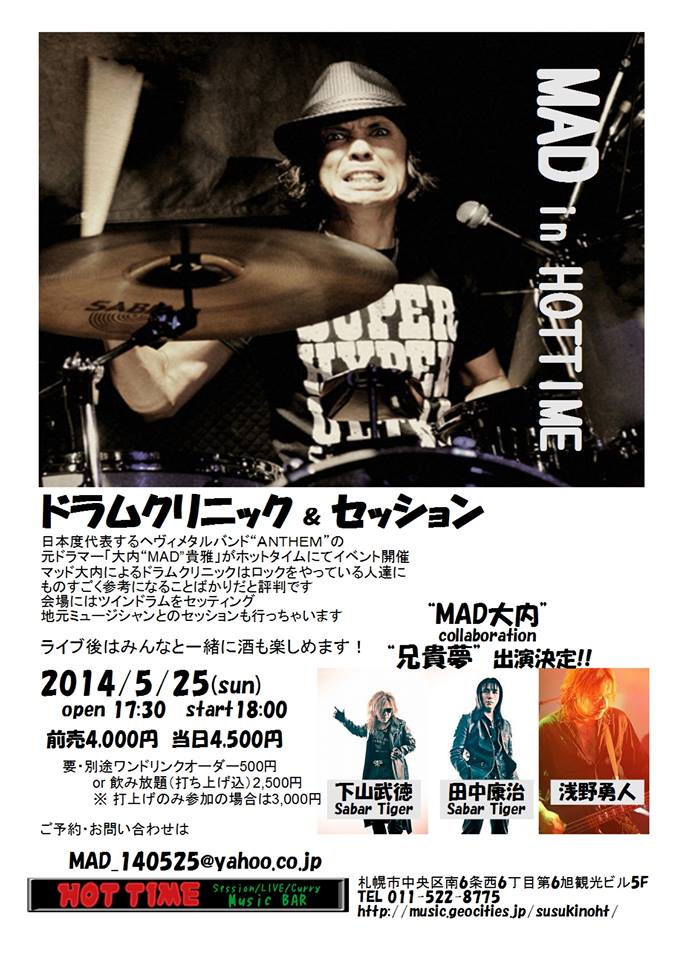 ブルデトも出演のマッドハウス大阪の日程を間違えてアナウンスしてました、ゴメンナサイm(_ _)m