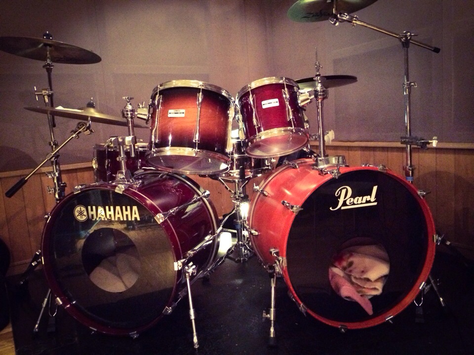 リハスタジオのドラム。片方がパールじゃないんで、イタズラしてやりました(^o^)