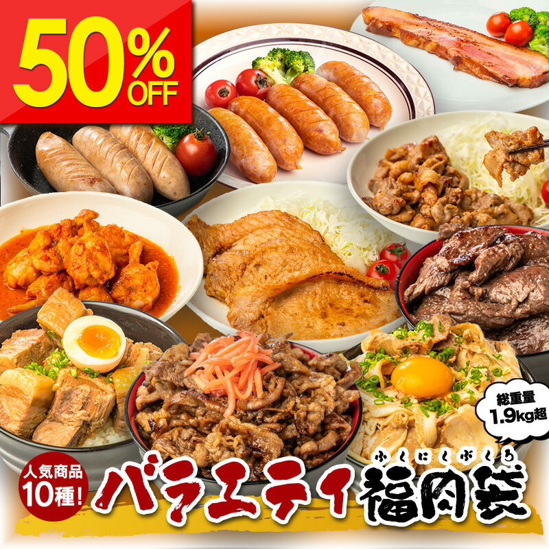 \超目玉半額★11日1:59まで/ お肉10種!1.9kg超 バラエティ福肉袋 武田ハム チャーシュー 角煮 ハラミ カルビ ベーコン 手羽元 トマト 生姜焼き 豚バラ ロース 味噌漬け フランク 味付け肉 詰め合わせ セット 豚肉 加工肉 牛肉 肉福袋 冷凍 ギフト 敬老の日楽天市場${EVENT_LABEL_01_TEXT}