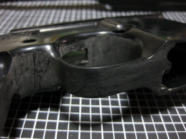 無塗装で仕上げるつもりなのでここでの作業が仕上がりに大きく影響します。白く見えるやすり跡が消えて元々の黒さが戻るまで400~1000番くらいまで何段階かに分けて入念に行いましょう。