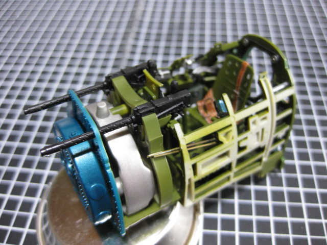 後部隔壁と機銃を取り付けてコクピットの完成となります。