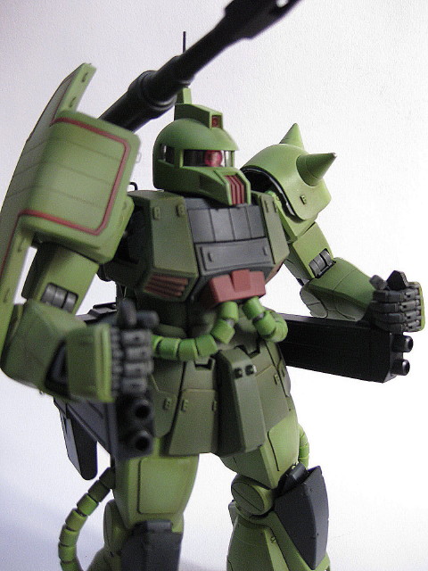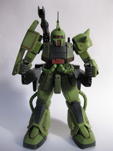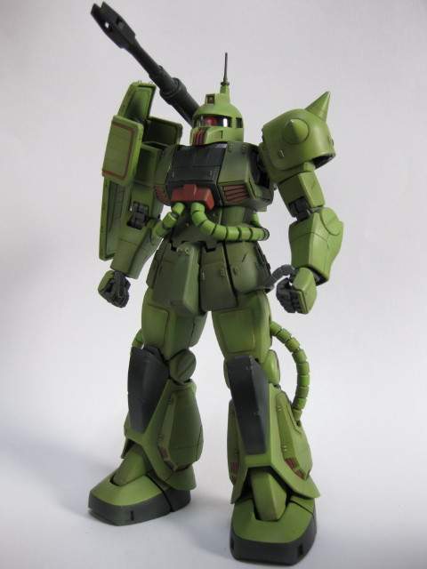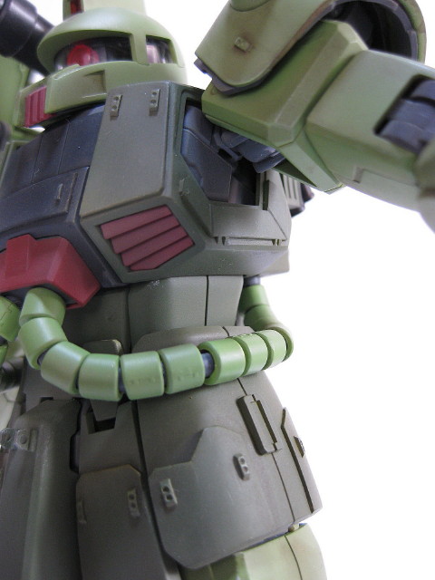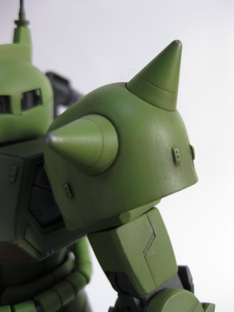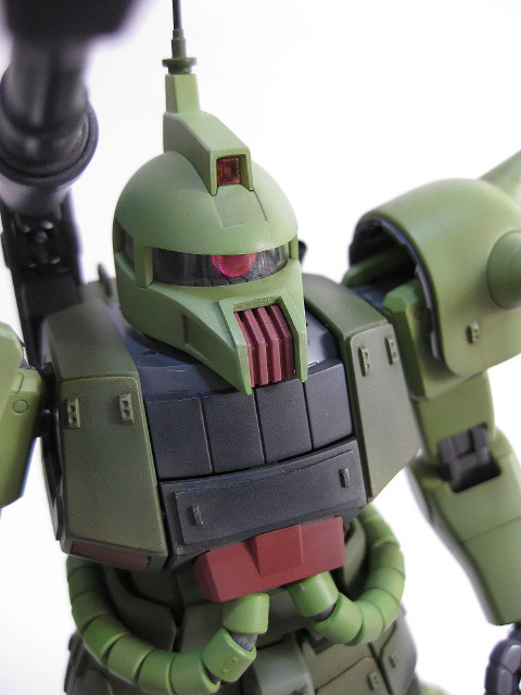 まずカラーリングについては先述の通り「量産を検討するにあたり一般的なMS-06と同じ塗装を施された」機体としました。