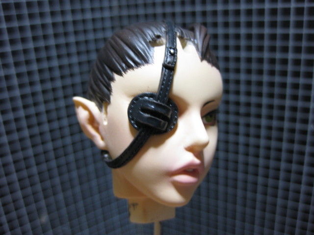 髪の塗装が出来たら一体でモールドされている眼帯の紐を塗装します。別パーツとなっている眼帯前部もここでいっしょに塗装します。