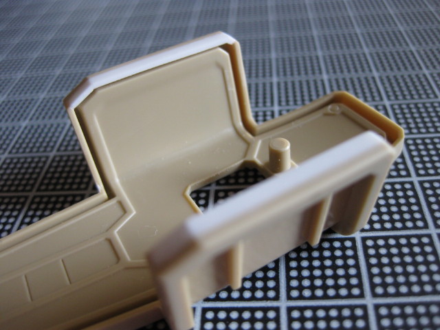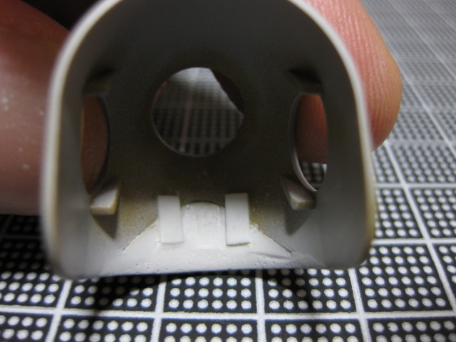 形状には不満はないものの、抜きの関係か左右の縁がないので、ここをプラ板で新造し上下の縁と形を合わせます。