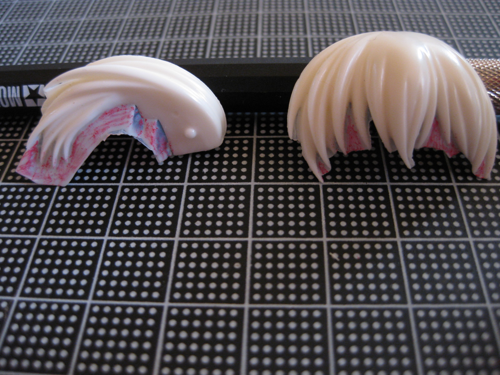 また、右画像の赤い部分、髪の毛の間にある膜のようなものがバリで、これも湯口と同じく不要な部分です。
