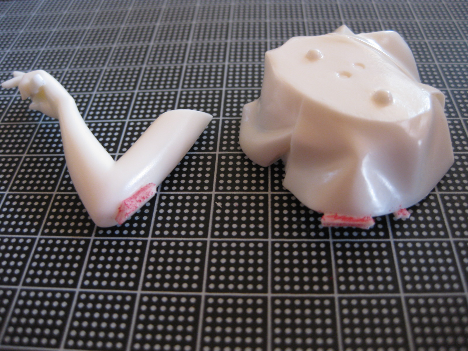 左画像の赤い部分の出っ張りが湯口で、これは型に樹脂を流し込んだ後にできる不要部分です。
