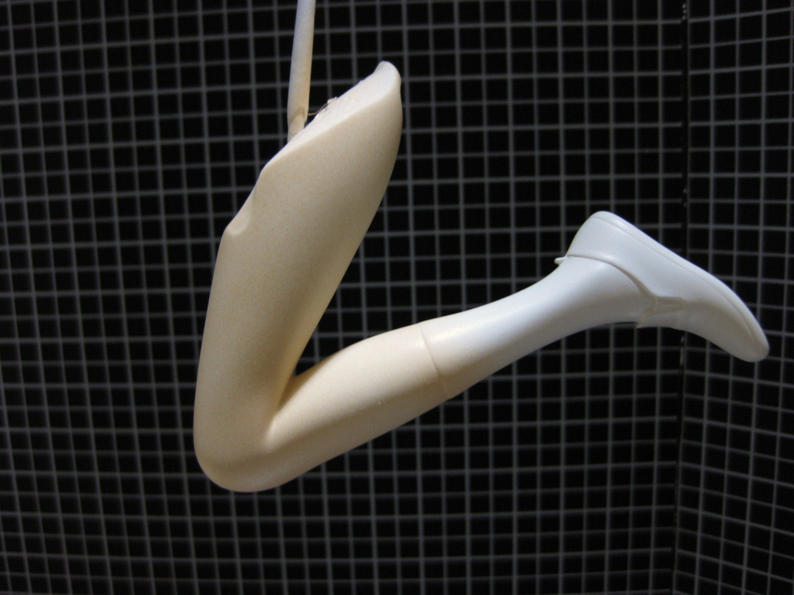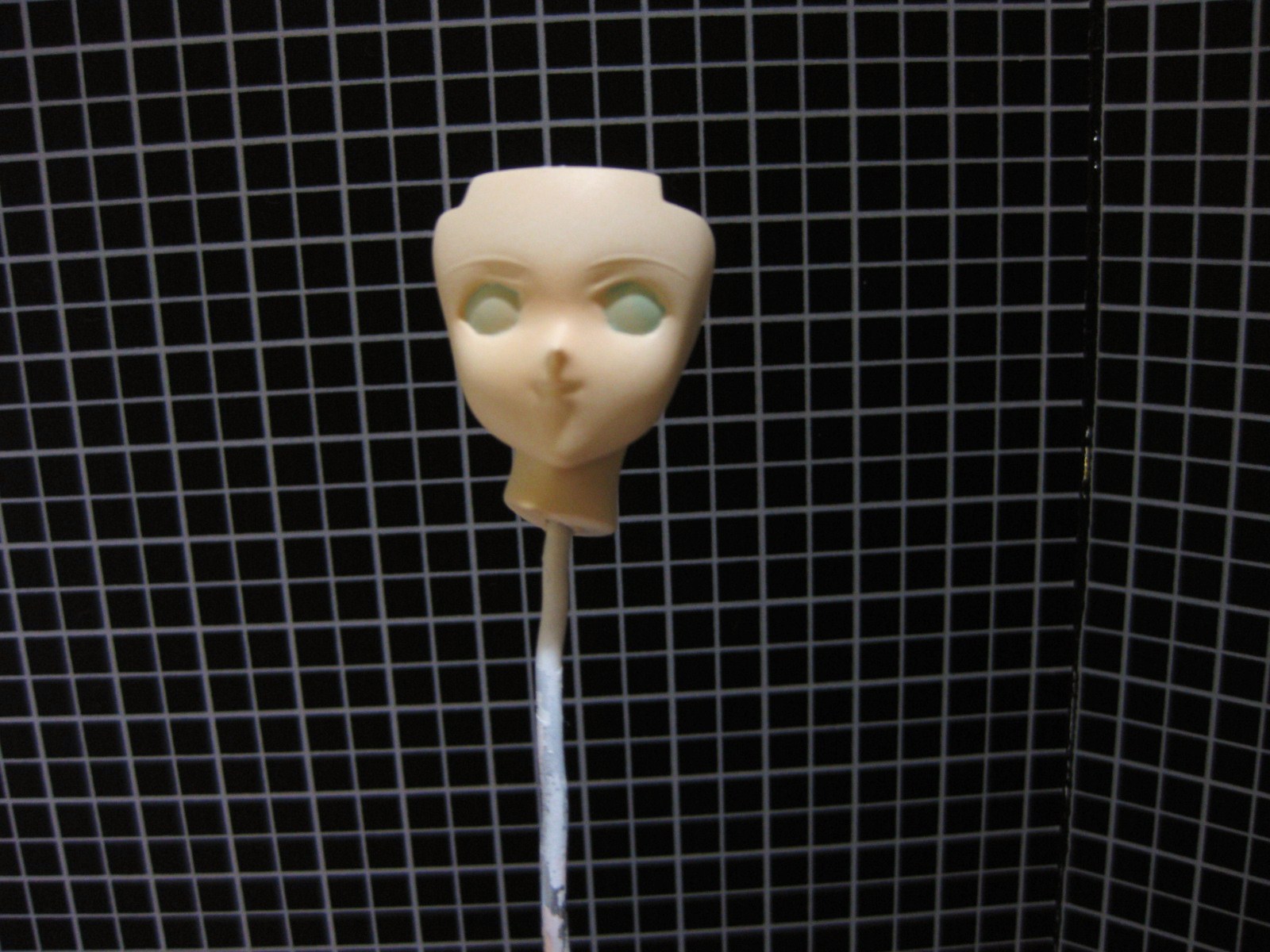 素肌部分は肌色の吹き重ねでシャドーを表現、色味が決まったらツヤを調整します。