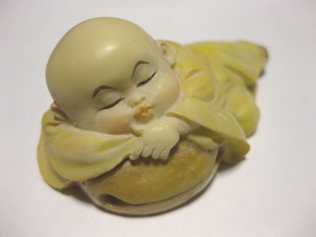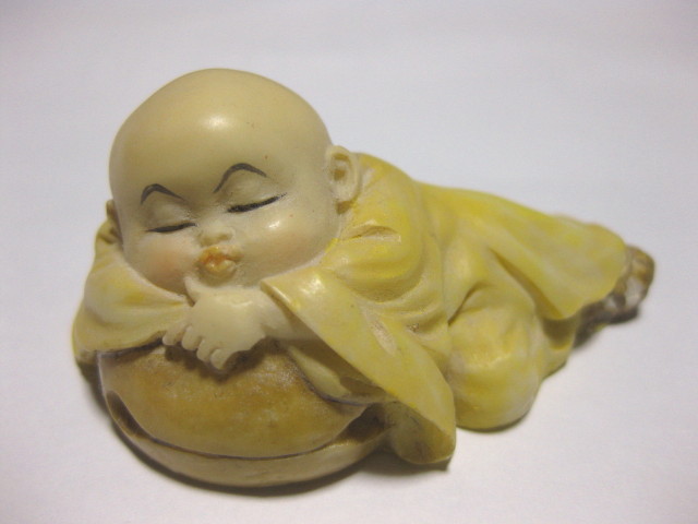 小僧さんの置物です。いくつか種類があって水浴びしてたり畑仕事してたり・・どれも表情が良くて可愛いんですが、中でもこの眠ってる小僧さんの素朴さに惹かれました。