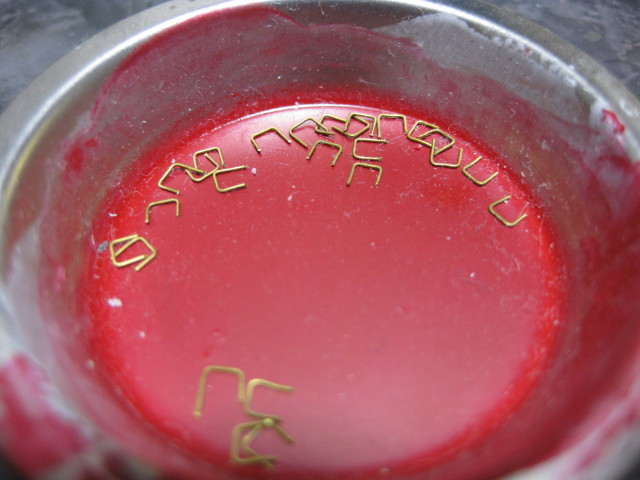 0.3mm真鍮線をひたすらピンセットペンチで曲げては切り取りどんどん量産します。