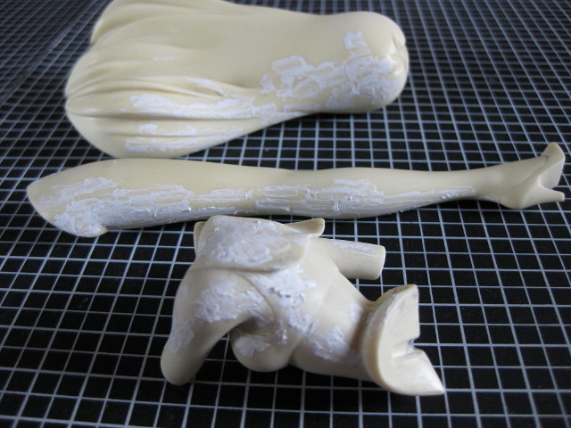 美少女系フィギュアは肌色が命!コスチュームも明るい色が多いのでホワイトパテを使いました。これだと表面がまだらにならず下地のサフを厚吹きせずに真っ白にできるので便利です。