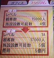 ・んで、早速スタジアムを変更しちゃいました。って、ちょっぴり早かったかな。どうせ、満員になってないんだから焦る必要は無いんだけどね。んで、スタジアム設備のトレーニング設備(1試合で+1500万ぐらい)が8ヶ月で2億、ホットドッグ屋(1試合で+440万)が5ヶ月で3000万円、ポップコーン屋(カップ戦3位で追加/1試合で+320万)が6ヶ月で3000万で建設可能。今のところ、長期的な物は建てても良さそう。短期的なものは月の試合数などでやめた方が良さそうですね。ホーム試合少ない場合は損しそー。