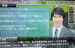 ・今回のサカつくはさくさく進みそうですよ。練習は監督が勝手にやってくれるので、こちらが選ぶ必要は一切なくなりました。こちらが指示するのは個別練習だけ。それも3人に限定です。色々とイベントが置き、そのイベントをこなしたりすると「覚醒ポイント」が増えます。これで覚醒練習が出来ます。んで、覚醒練習を終えると選手個人にある六角形がぐーんと伸びます。今回は練習コマンドは「臨時休養」メインかも。