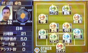 ・結構、メンバーが変わりました。FWに新人の平、ボランチにも新人の松沢、CBにも三谷と新人が一斉にスタメンへ。アルシンドとカズは年齢から来る衰えで六角形がガクっと落ち込みました。FWだから別にいいんだけど、守備力が0に等しいぐらいに減るんですね。もう、前線からの守備なんかしないぞって感じですね。逆に大岩は攻撃しないぞってな六角形になってます。ここらへんはリアルでいいですね。